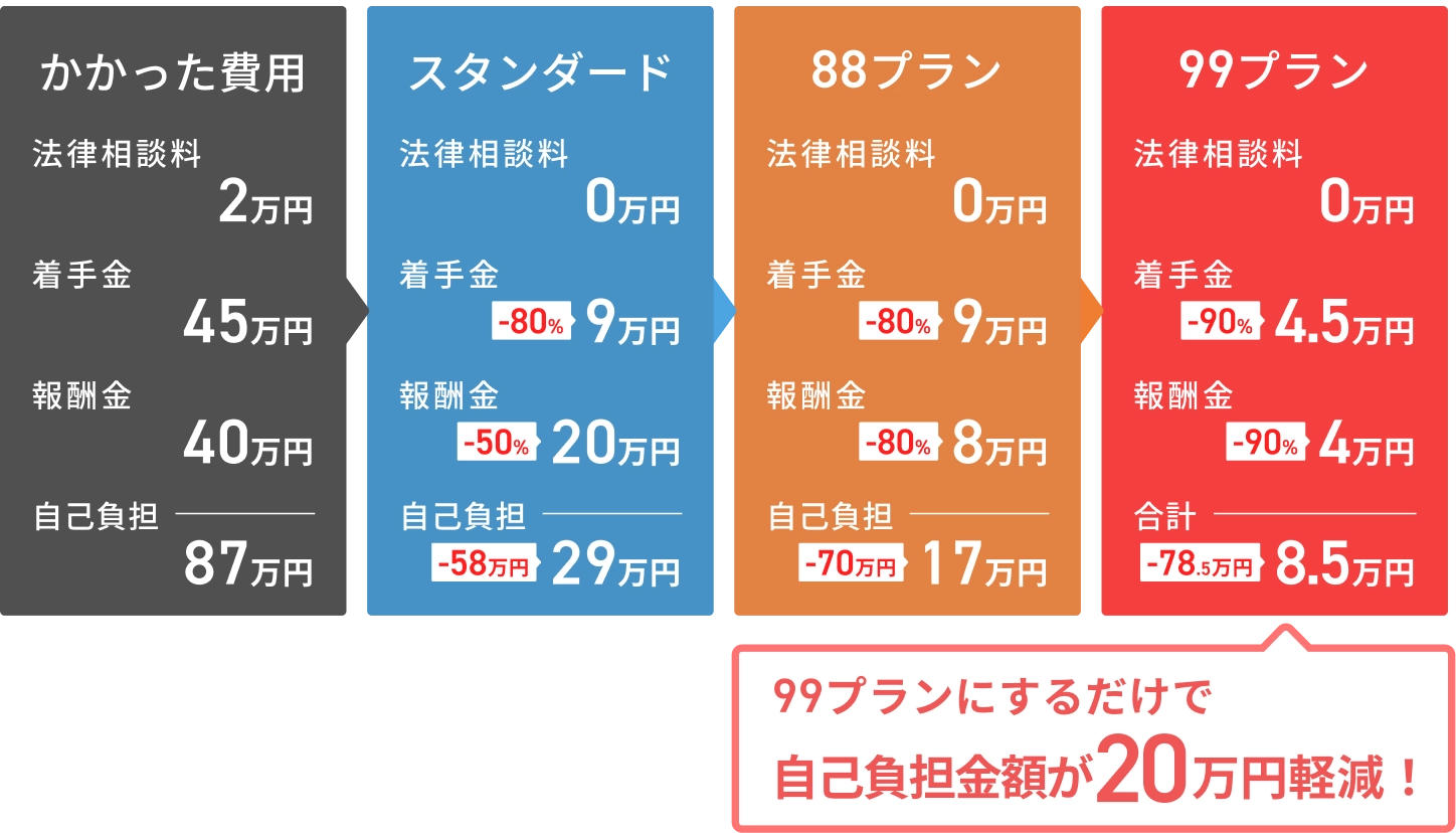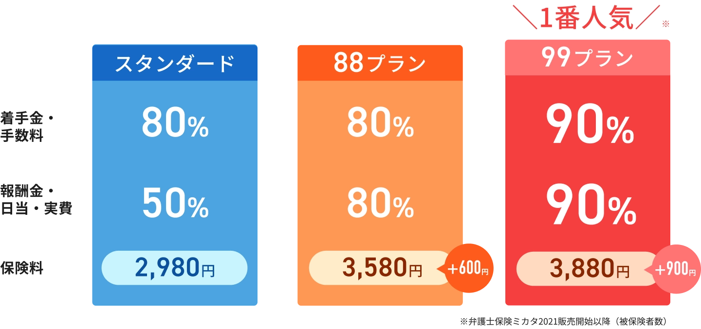 このプランを付加することによって、お支払いする保険金が大幅に増加します。少額のトラブルが起きた時でも、支払われる保険金の額が大きくなるため、より弁護士に委任しやすくなります。